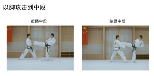 在符合规则的情况下,将一套攻击动作有效的实施在对手身上,可以将各个动作相应得分累加。举个例子:例如连续两拳击中对手头部,根据得分规则,可以得到 1+1=2 分;再例如空中跳