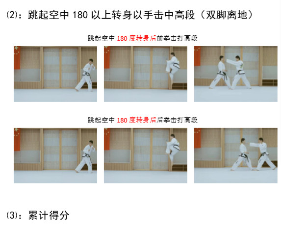完成;甚至在空中两拳后,落地之前还能再踢一腿到高段,那就是 2+2+3=7 分。以此类推。