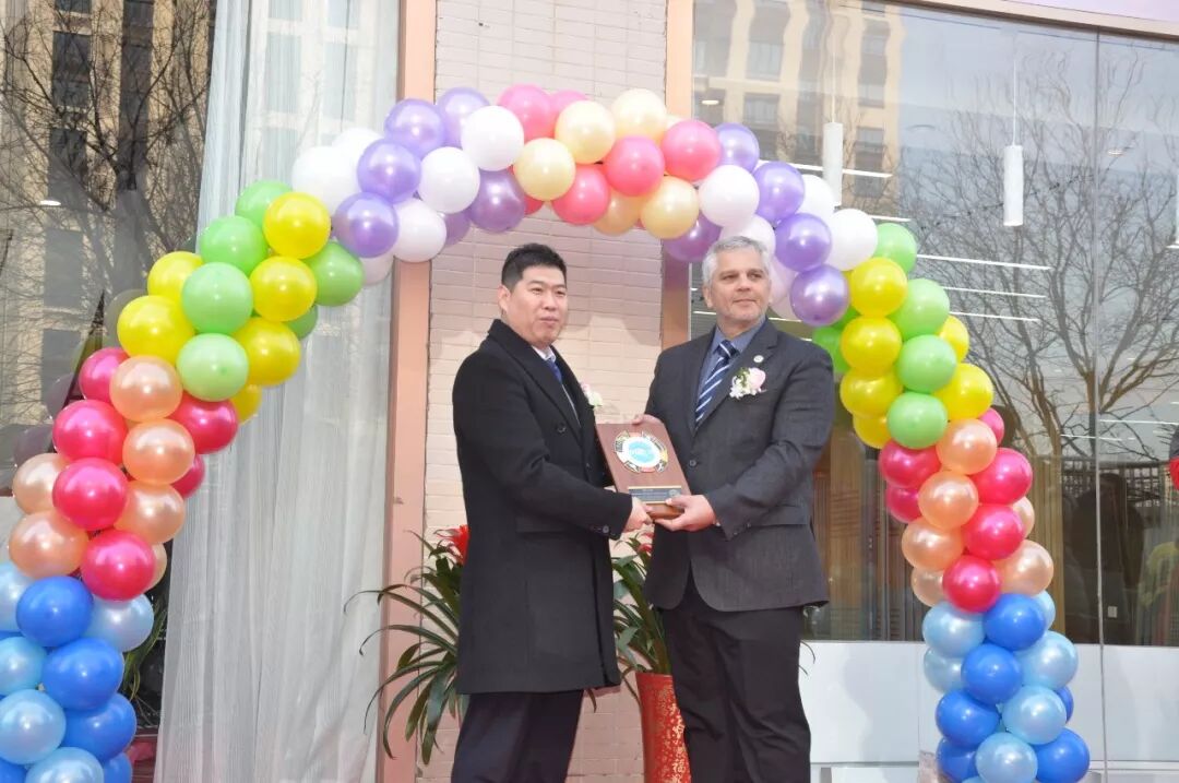 ▲国际跆拳道联盟副总裁尼克斯师圣为苍轩总裁赵京虎师贤授牌