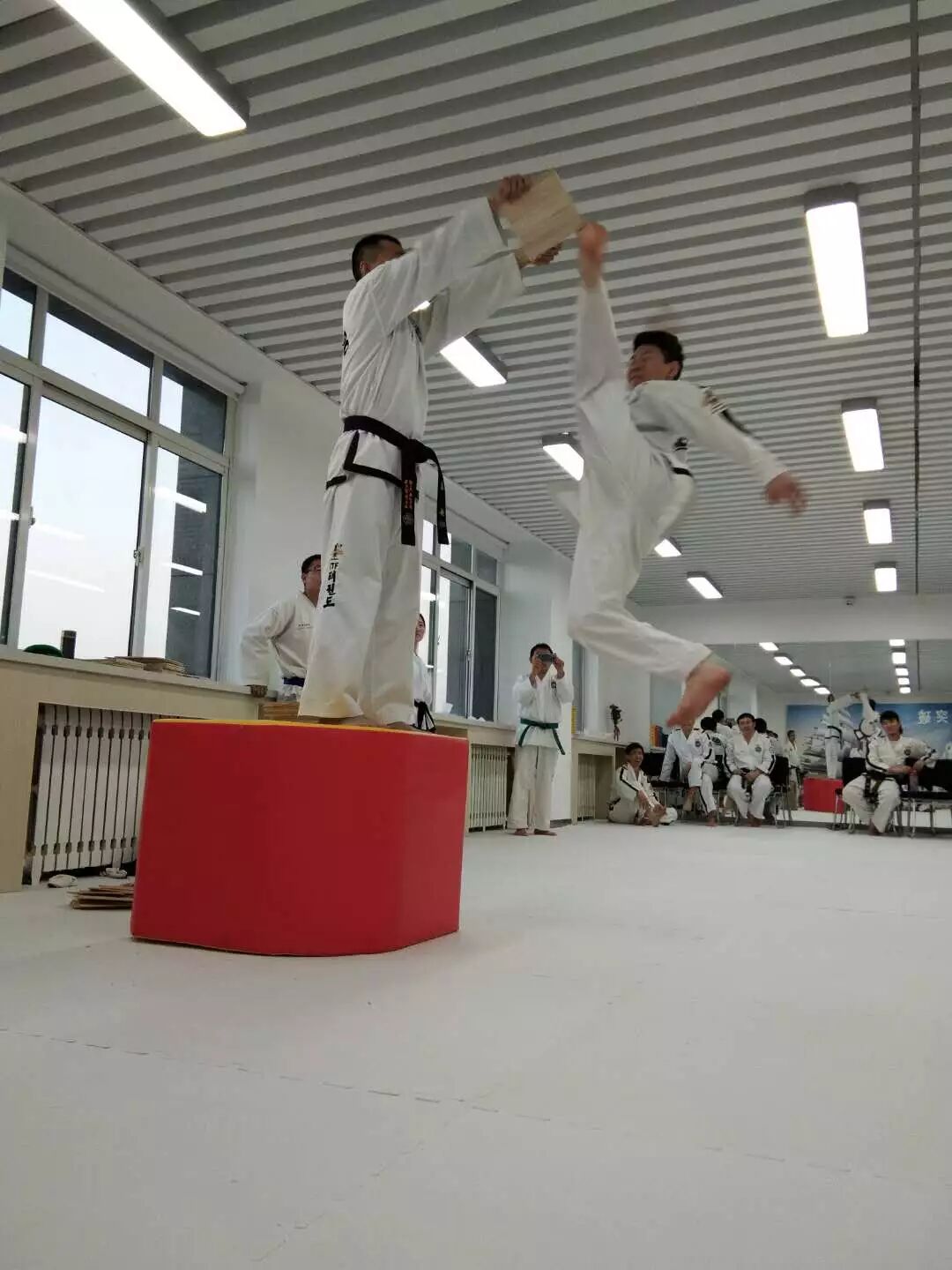 在此次的苍轩大练兵中,来自全国的苍轩师范们还有一项重要的事情,就是在国际跆拳道联盟最高领导层的监考下进行升段考试,其中苍轩檀君会馆主师范、中国农业大学承义馆馆长苏建松师范,昆山苍轩跆拳道总馆长、原中国科学技术大学馆馆长叶平师范,以及北京苍轩跆拳道力源武道馆馆长刘洋师范和张媛师范荣升六段。