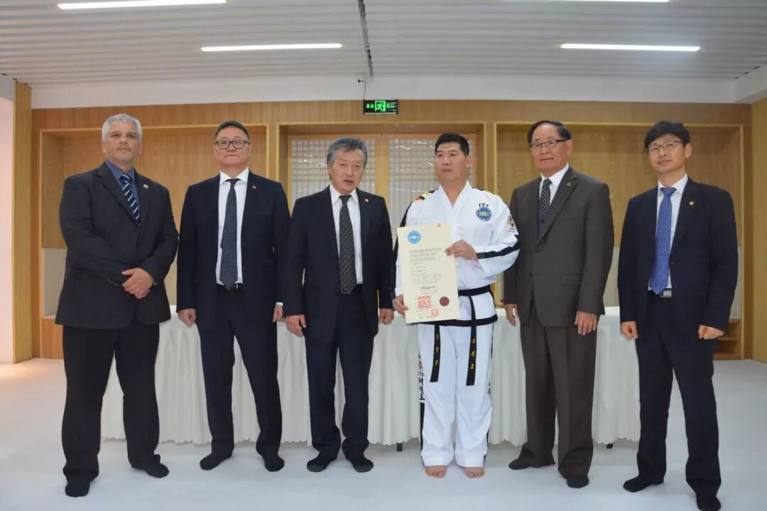 同时国际跆拳道联盟总裁崔重华师圣、国际跆拳道联盟创始人之一、首任秘书长金钟賛师圣、副总裁里盖师圣、副总裁尼克斯师圣、国际跆拳道联盟宣传委员长郑赞国先生一同来到苍轩学院视察,授予苍轩跆拳道作为国际跆拳道联盟中国区代表,同时任命苍轩跆拳道总裁赵京虎师贤为国际跆拳道联盟(中国)首席师贤。